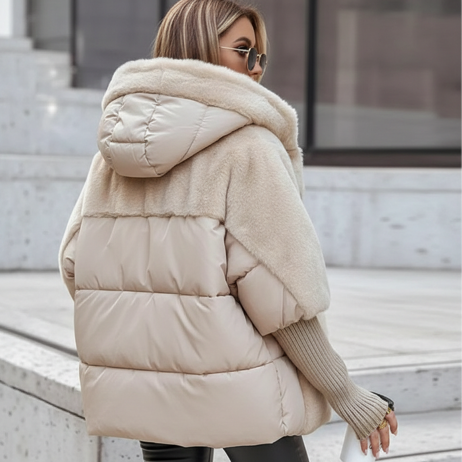 Découvrez une pièce unique qui fusionne le luxe de la fausse fourrure avec le confort d'un design matelassé. Sa coupe "chauve-souris" moderne s'adapte à toutes les silhouettes pour un style instantanément sophistiqué. Un indispensable de garde-robe pour celles qui recherchent une allure chic et affirmée.